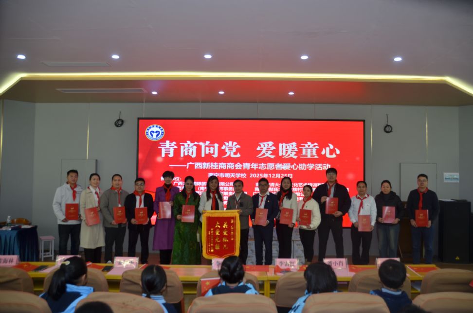 以温暖相约,以成长作答——广西新桂商商会开展“青商向党 爱暖童心”爱心助学活动 2025年12月25日,在南宁市明天学校,广西新桂商商会青年企业家组成的青年志愿者服务队开展了一场别开生面的“青商向党 爱暖童心”爱心助学活动。此次活动,商会企业家为孩子们准备了价值2万多元的运动服、纯牛奶、文具乐器、运动器械、儿童读物等学习生活用品,为孩子们送上冬日的温暖,以实际行动传递爱心,助力莘莘学子健康快乐地学习成长,同时也彰显商会的社会责任,展现青年企业家担当。捐赠仪式上,学校还为爱心企业家们颁发了锦旗和证书。 广西新桂商商会常务副会长、广西大象国际旅行社有限公司总经理李昌宇代表爱心企业家在发言中表示,商会作为青年企业家组织,关爱下一代,助力孩子健康成长,是义不容辞的时代责任。这份坚持,源于我们内心深处的责任感,也源于我们对脚下这片土地深深的热爱。希望每位同学都能健康快乐的成长,勇敢去追逐梦想,在知识海洋中遨游,以善良和勤奋书写自己的人生,并将今日感受到的温暖,持续传递下去。 南宁市明天学校孤儿管理处主任蒙元思表示,广西新桂商商会企业家们的善举,不仅是对学校师生的支持和鼓舞,更彰显了商会企业家们不忘初心,积极回报社会,化小爱为大爱的爱心企业家精神。企业家们的真情厚爱,将鼓舞学校牢记重托,努力呵护好孩子们的健康成长,传递温暖与正能量,以优异成绩回报社会。 据悉,自2022年以来,广西新桂商商会青年企业家组成的青年志愿者服务队每年都开展爱心捐赠活动,据不完全统计,今年捐款捐物总价值已超过24万元。商会党支部书记李宙红介绍,商会青年志愿者服务队自成立以来,充分发挥党建引领作用,积极开展志愿服务,始终坚持“奉献、友爱、互助、进步”的志愿服务精神,积极投身各项公益事业,以实际行动传递正能量,践行社会责任。 广西新桂商商会成立13年来,践行“政治建会,团结立会,服务兴会,改革强会”办会宗旨,以“两个健康”为核心、以“四好”商会、5A社会组织建设为抓手,以开展“五基三化”攻坚年行动为牵引,发挥党建促会建作用,实现党建与会建共融共建,促进商会高质量发展。在全体会员的努力下,商会多次被全国工商联评为“全国四好商会”。 (编辑:莫丽) |