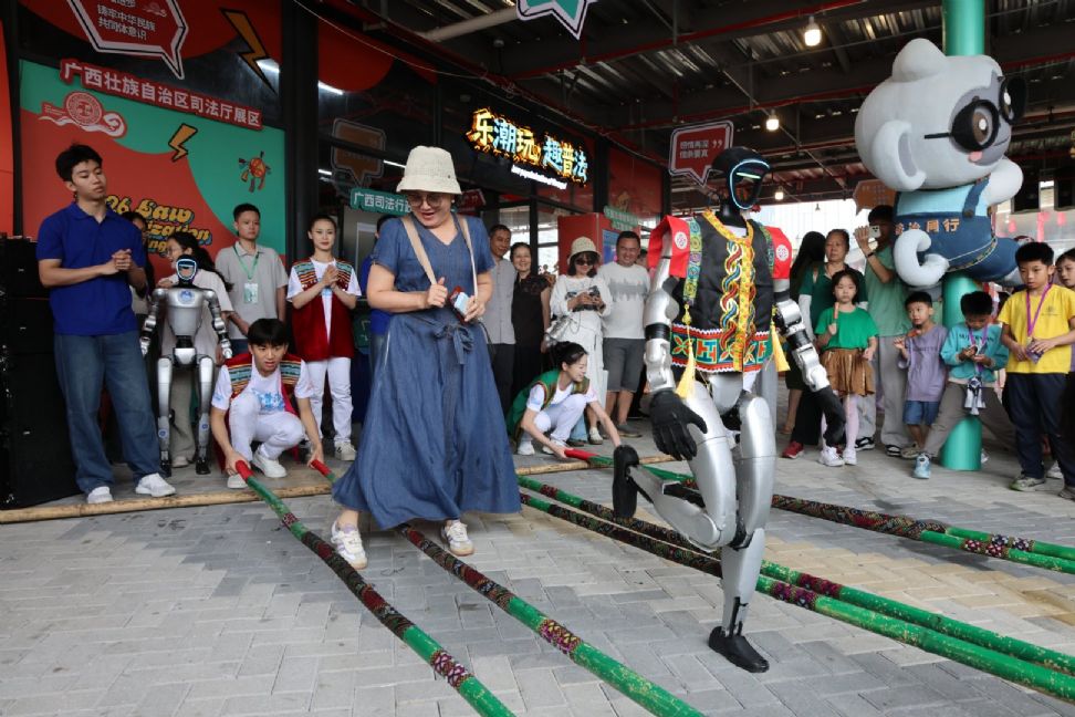 开幕式现场暖意融融、氛围热烈,身着绚丽节日盛装的广西各族群众代表齐聚一堂,组成同心方阵,以一曲欢快昂扬的《广西尼的呀》唱响团结欢歌,热情迎接八方宾朋。兰花步道尽显雅致风情,人机竹竿舞打破次元壁垒点燃全场热情,智能民族纹样演绎、非遗国风焕新展示、东盟多国艺术团体联袂汇演轮番亮相,各民族文化同台绽放、中外文化友好交融,处处洋溢着各民族像石榴籽一样紧紧抱在一起的浓厚氛围,在春日八桂共绘民族团结、携手奋进的美好画卷。