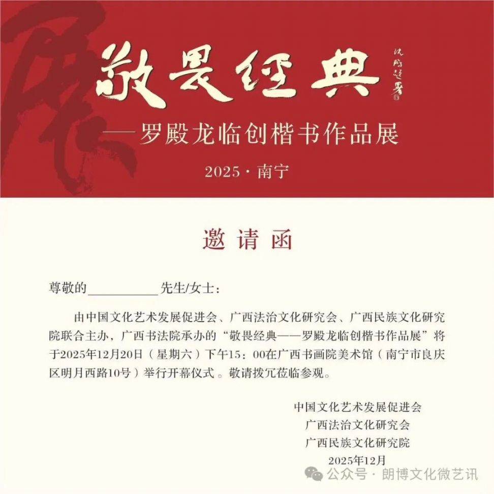 敬畏经典 罗殿龙临创楷书作品展 中国文化艺术发展促进会 广西法治文化研究会 广西民族文化研究会 承办单位 广西书法院
